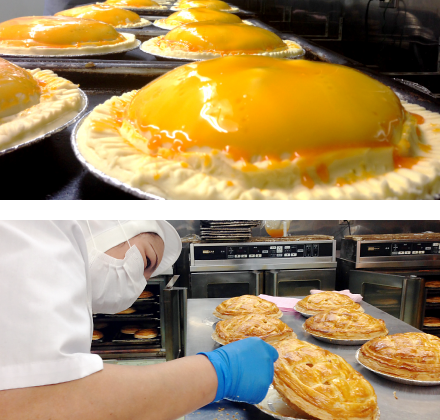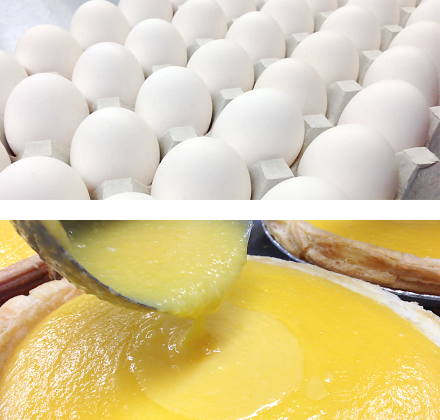 主役となる果物を厳選するのは言うまでもありませんが、焼き上がった生地が黄金色に輝く青森産の卵や、パイ生地との相性が良い小麦粉などすべての材料を選び抜いております。