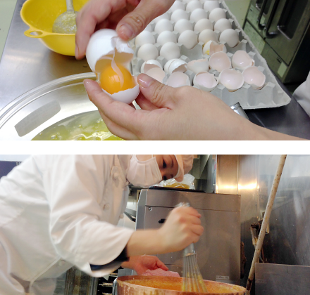 卵を使うだけでも、大量の殻を割り白身と黄身を分けていく作業が毎日深夜まで続きます。