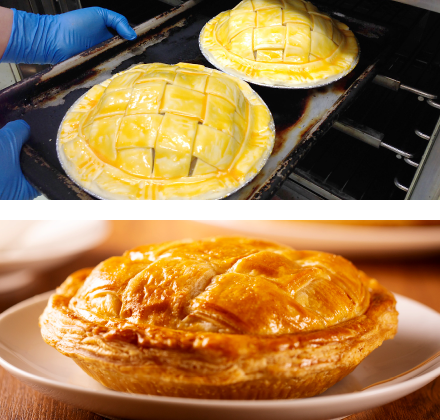 黄金色に焼き上がり、香ばしい香りとサクサクした食感を醸し出すパイ生地は、マミーズのアップルパイの大切な魅力のひとつです。