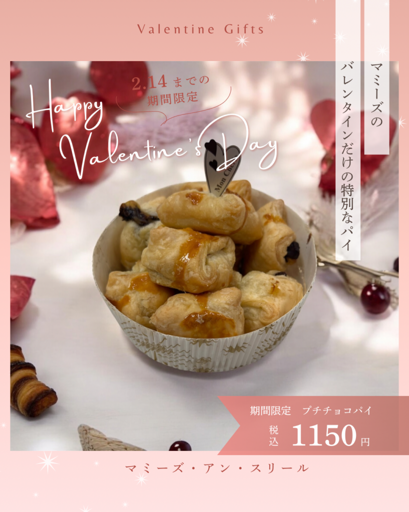 2/1~2/14までの期間でマミーズのバレンタインギフトプチチョコパイ販売中です。